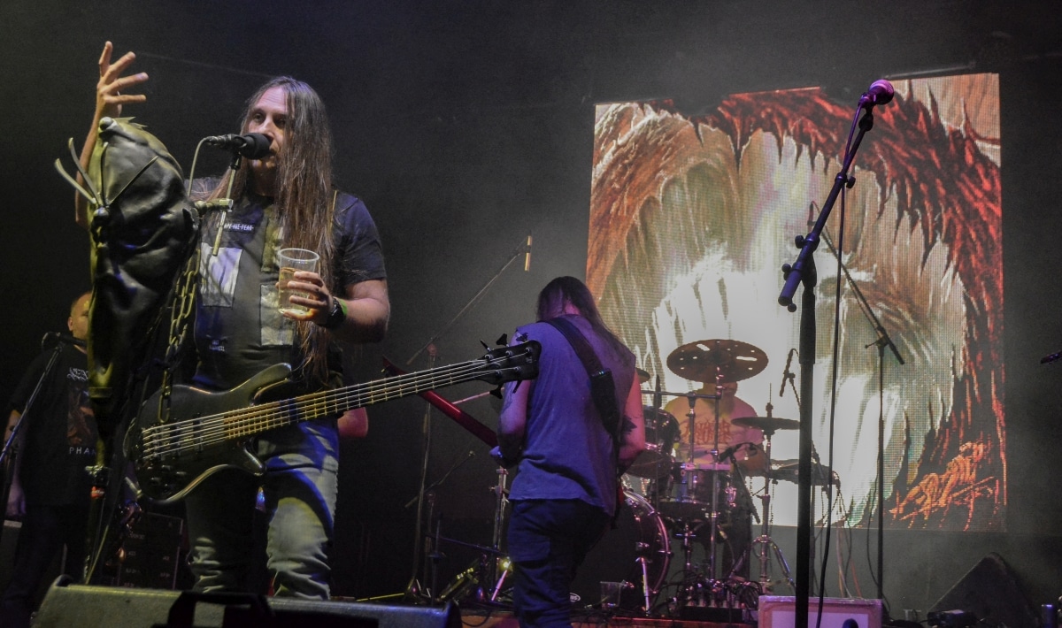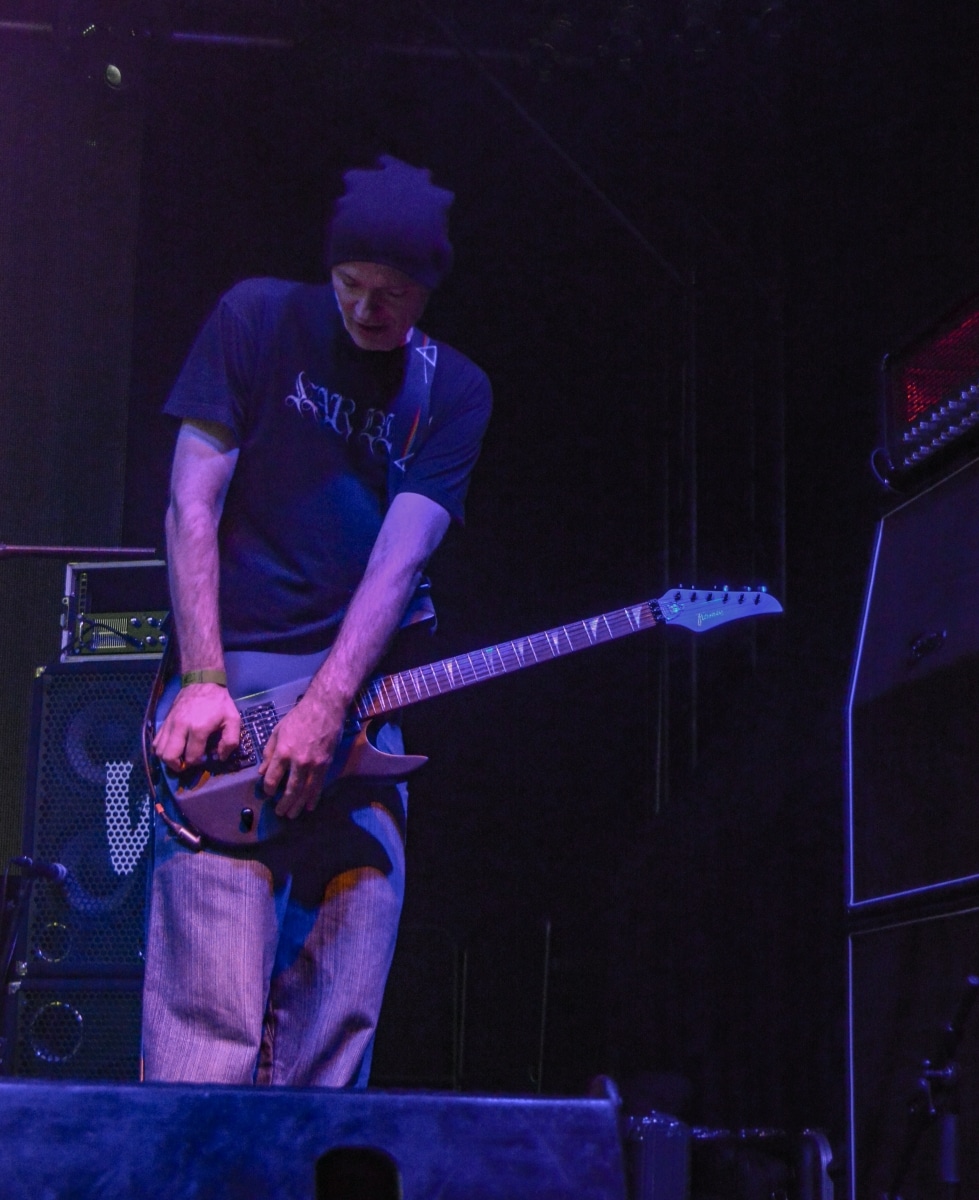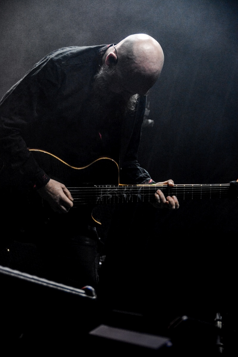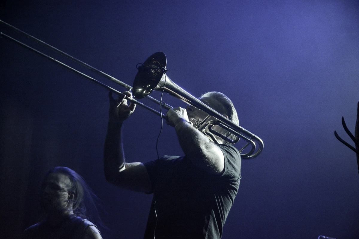 Erre az estére összesen két fellépőt vártunk: értelemszerűen a születésnapos Sear Bliss-t, és – mivel lehetett tudni, hogy meglehetősen hosszú setlist-tel fognak érkezni – így csak egy vendég zenekarnak marad hely aznap estére: a születésnapos választása a román Dordeduh-ra esett. Az előzetes elképzelés az volt, hogy a román banda kétséget kizáróan emelni fogja az est fényét, és ezt a várakozást csak megerősíteni lehet. Imádom a Dordeduh-ot, mind a zenészeket, mind a zenét. A kapcsolatunk nem túl szoros, viszont régi: nem egyszer láttam őket még Negură Bunget-ként fellépni Budapesten, és már akkor is elemi erővel hatott rám az a teljesen egyedi légkör, amit megteremtették. A nagy válás után a légkör egyedisége megmaradt, jellege talán egy picit változott, de továbbra is teljesen lebilincselő volt, amit hallhatunk. Most csökkentett létszámmal érkezett a Dordeduh, azaz két gitár – basszus – dob felállásban léptek föl – nem úgy, mint a Thy Catafalque előzenekaraként a 2021-es Mezolit-koncerten. Kristálytisztán szóltak, és ez az ő zenéjüknél eszméletlenül fontos: itt a harmóniákkal és a zene dinamikájával-hangerejével való játék kulcsfontosságú a zenei élmény szempontjából; ha valami nem szól rendesen, akkor az egész fellépés tulajdonképpen csapnivaló lesz. És igen, imádom azt is, ahogy ez a négy figura zenél. Edmond Karban mint egy hatalmas oroszlán penget-énekel és ordít, a jobbján a nyakigláb Flavius basszusgitáros játszik teljesen átszellemülten, balra pedig a kopasz szakállas Christian Popescu, aki villogó tekintettel hol a gitár nyakát nézi, hol pedig a mellette lévő cimbalmot. A dalaik alapvetően lassúak és viszonylag hosszúak – mivel pedig setlist nem állt rendelkezésre, így többen próbáltuk kitalálni, hogy pontosan mi is hangzott el és összesen hány tétel, de nem tiszta, hogy öt vagy hat dalt játszottak (a kollektív megfejtés a Timpul întâilor, Desferecat, Descânt, De neam vergur, În vieliștea uitării, Jind de tronuri lett). Ami tény, hogy alapvetően a Har album tételei dominálták ezt a fellépést – ha a kedves olvasó véletlenül nem tette volna meg az eddigiekben, úgy feltétlenül javaslom minél alaposabban meghallgatni ezt az anyagot. Ami a fellépés külön szépségét adta, az két, határokon és kultúrákon átívelő gesztus. Az egyik gesztus, hogy Edmond – igaz, hogy tört magyarsággal, de – egészen hosszan magyarul beszélt a közönséghez, és a másik gesztus, hogy minden egyes ilyen felkonferálást a közönség zúgó tapssal jutalmazott.