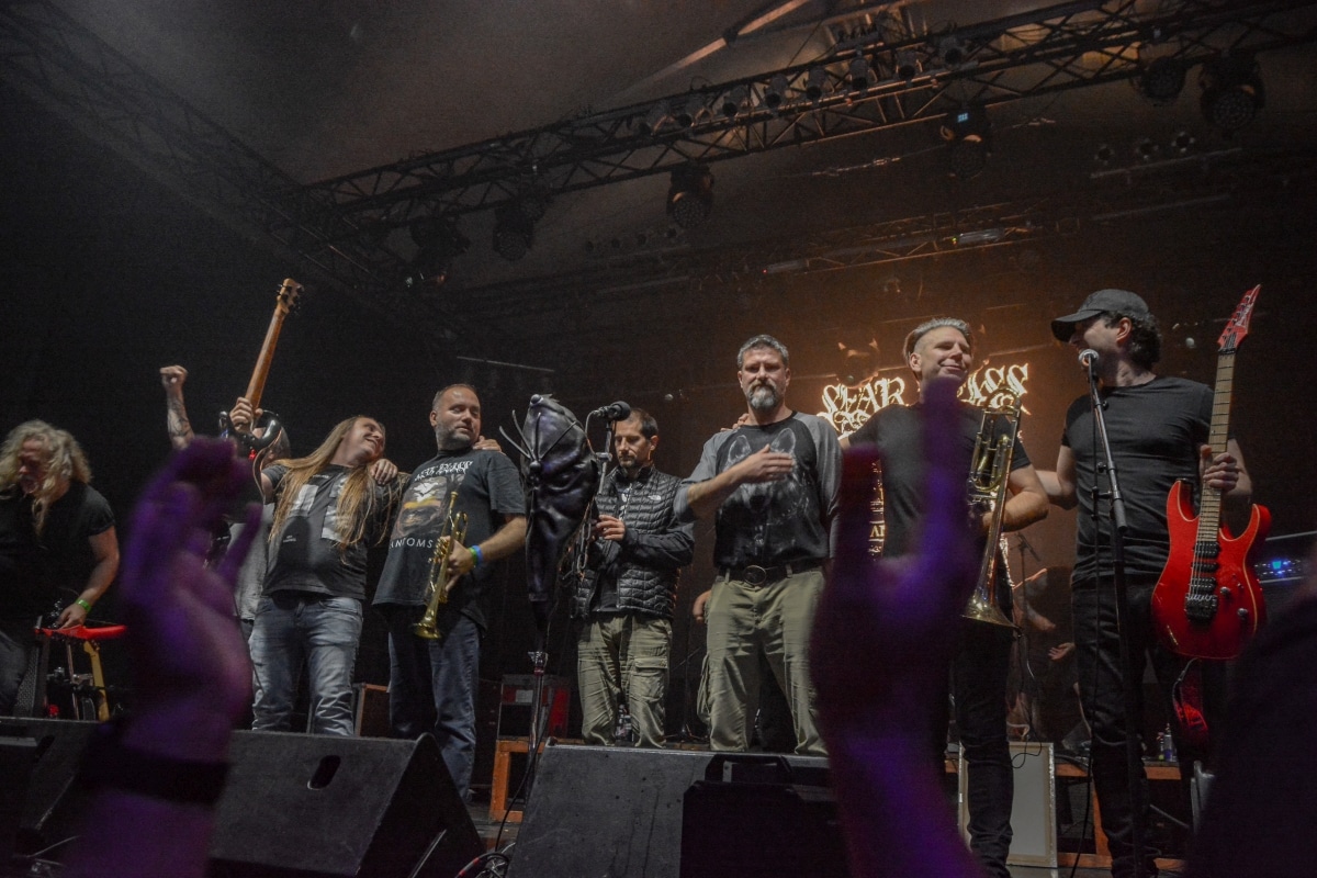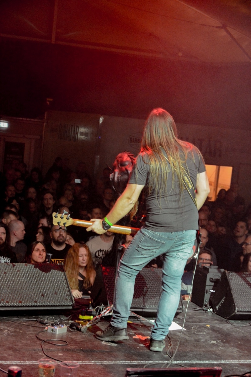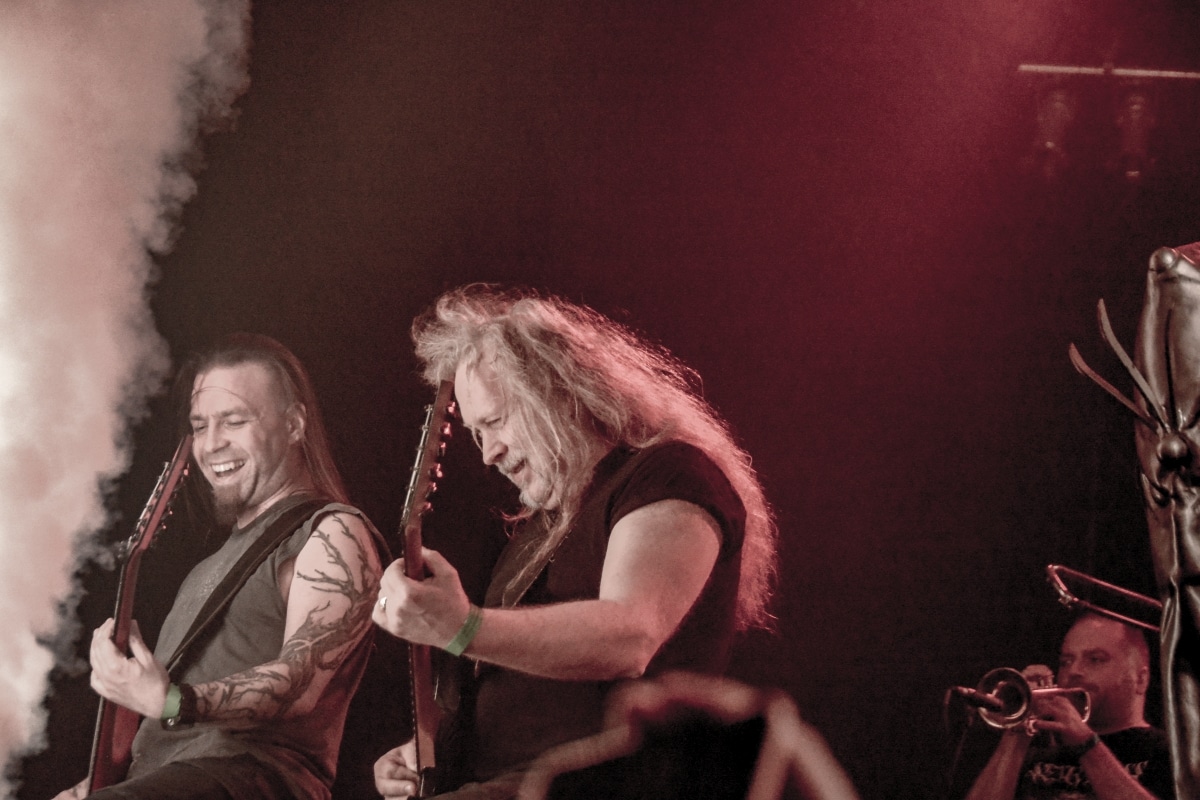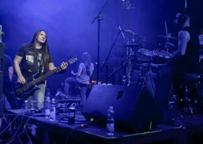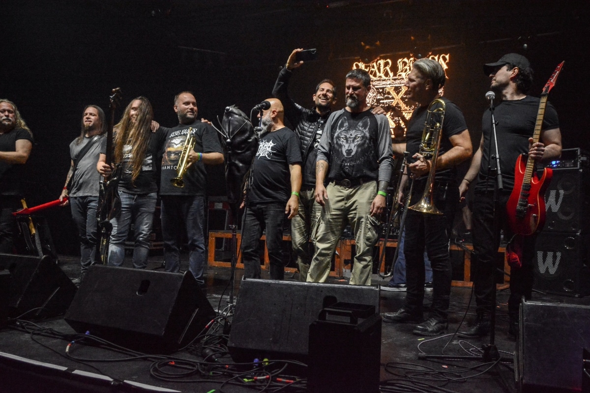 Ha az est ezen a ponton véget ér, már akkor mindenki boldogan ment volna haza, de nem ez történt. A szülinapos – teljesen kézenfekvő módon – időrendi sorrendben ment végig az életművön minden egyes albumról pár dalt leporolva-felidézve (Blood on the Milky Way, Seven Springs, As the Bliss Is Burning, The Upper World, Twilight, The Haunting, Soulless, Arx idolatriae, A Deathly Illusion, Birth of Eternity, Eternal Battlefields, There’s No Shadow Without Light, A Lost Cause, Far Above the Trees, A Mirror in the Forest, Two Worlds Collide, Hangdrumos, 1100 Years Ago). A múltidézés most is teljesen egyedi volt, hiszen volt olyan tétel, amelyik talán másodjára hangzott el élőben, és mivel a Sear Bliss ezzel az egész eseménnyel párhuzamosan éppen stúdiózik, így adta magát, hogy a zenei munkásság áttekintése egy picit kinyúljon a jövőbe is, emiatt az utolsó előtti tétel is már az új anyagról szólt. Teljesen őszinte leszek: nem tudnám megmondani, hogy melyik albumon ki milyen hangszeren játszott anno, de igazából úgy tűnt, hogy mindenki eljött, aki csak akart és tudott – de természetesen nem azért, hogy a közönség soraiban ácsorogjon. Az egész múltidézős koncepció nagyjából arra volt felhúzva, hogy minden dalt az a konfiguráció adott elő, amelyik tevőlegesen közreműködött az adott album vagy dal megszületésében, és pontosan ez a létszám volt az, ami miatt például a beállással is megcsúsztak a fiúk. Felejthetetlen jelenet volt Neubrandt István beállása, aki fölsétált a színpadra, bedugta a gitárt, majd a következő párbeszéd játszódott le nagyjából 30 másodpercben: