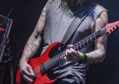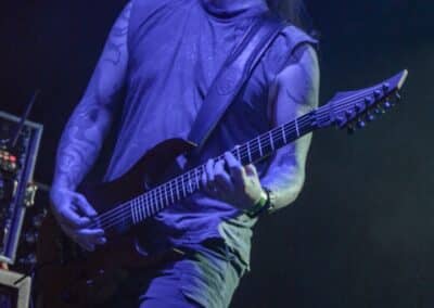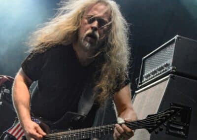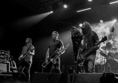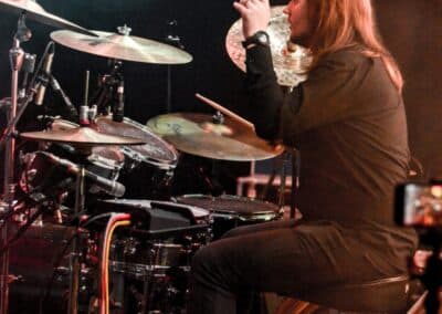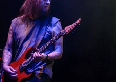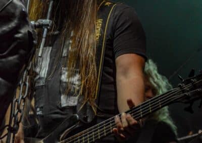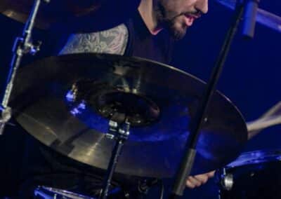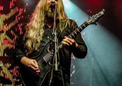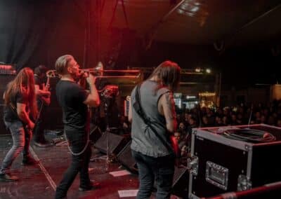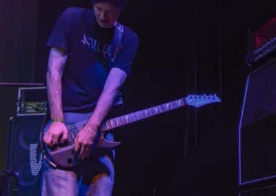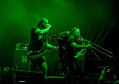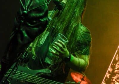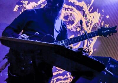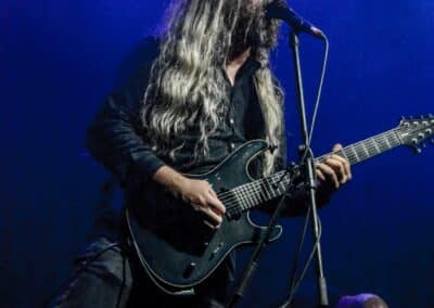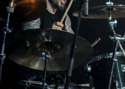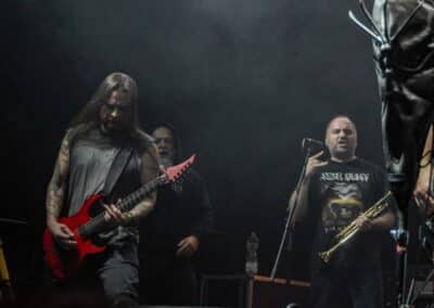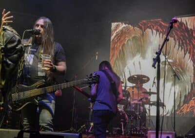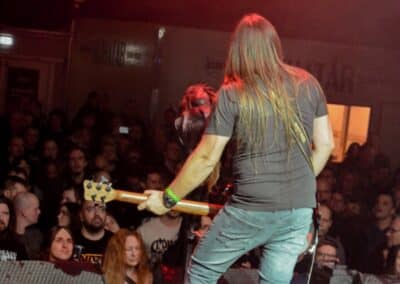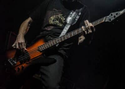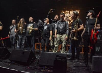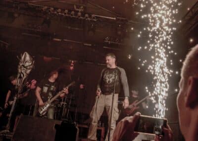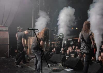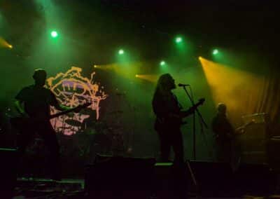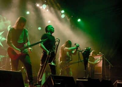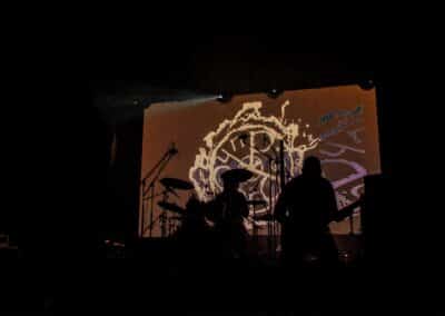 Ha az est ezen a ponton véget ér, már akkor mindenki boldogan ment volna haza, de nem ez történt. A szülinapos – teljesen kézenfekvő módon – időrendi sorrendben ment végig az életművön minden egyes albumról pár dalt leporolva-felidézve (Blood on the Milky Way, Seven Springs, As the Bliss Is Burning, The Upper World, Twilight, The Haunting, Soulless, Arx idolatriae, A Deathly Illusion, Birth of Eternity, Eternal Battlefields, There’s No Shadow Without Light, A Lost Cause, Far Above the Trees, A Mirror in the Forest, Two Worlds Collide, Hangdrumos, 1100 Years Ago). A múltidézés most is teljesen egyedi volt, hiszen volt olyan tétel, amelyik talán másodjára hangzott el élőben, és mivel a Sear Bliss ezzel az egész eseménnyel párhuzamosan éppen stúdiózik, így adta magát, hogy a zenei munkásság áttekintése egy picit kinyúljon a jövőbe is, emiatt az utolsó előtti tétel is már az új anyagról szólt. Teljesen őszinte leszek: nem tudnám megmondani, hogy melyik albumon ki milyen hangszeren játszott anno, de igazából úgy tűnt, hogy mindenki eljött, aki csak akart és tudott – de természetesen nem azért, hogy a közönség soraiban ácsorogjon. Az egész múltidézős koncepció nagyjából arra volt felhúzva, hogy minden dalt az a konfiguráció adott elő, amelyik tevőlegesen közreműködött az adott album vagy dal megszületésében, és pontosan ez a létszám volt az, ami miatt például a beállással is megcsúsztak a fiúk. Felejthetetlen jelenet volt Neubrandt István beállása, aki fölsétált a színpadra, bedugta a gitárt, majd a következő párbeszéd játszódott le nagyjából 30 másodpercben: