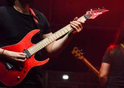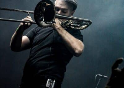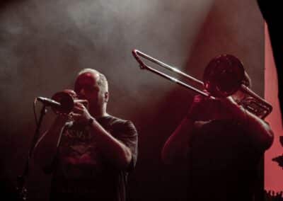 A fellépés során Bandó minden számot szinte kivétel nélkül alaposan felkonferált, különösen, amikor a backing track-ről szóló szinti nem akart elindulni; és bármennyire is ragaszkodott hozzá, hogy ő nem a szavak embere, szerintem egy tökéletes keresztmetszetet adott a zenekar működéséről és munkásságáról. Az utolsó tétel alatt – gondolom, már mindenki számára előre borítékolható volt, hogy az 1100 Years Ago lesz – az összes jelenlévő zenész egyszerre játszott, azaz minimum ketten énekeltek, négy gitár szólt, és a korábban a zenekart erősítő dobosok is beálltak énekelni. Tűzijáték, célfotó, zenészsimogató, aztán mindenki mehet a dolgára.