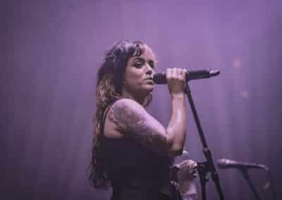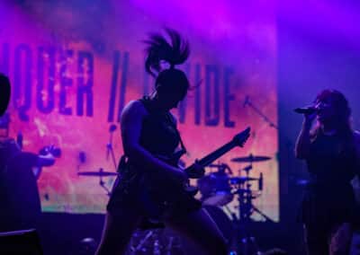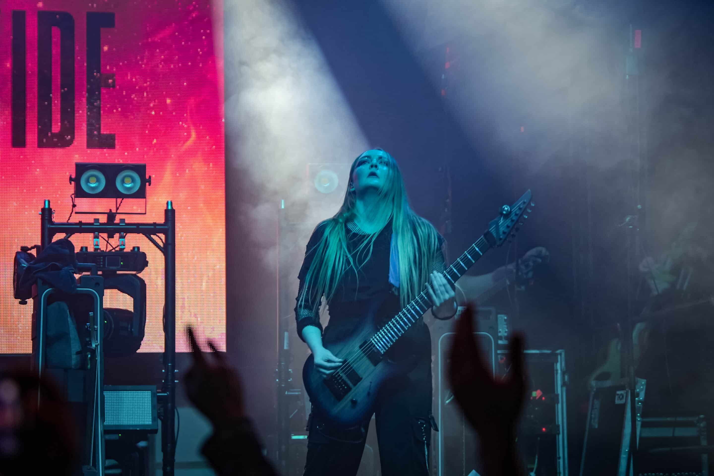 A Conquer Divide már elkezdte a koncertet, amikor bejutottunk a sátorba. Nem volt nagy tolongás sajnos, de így legalább jól lehetett helyezkedni. A zenekar eredetileg csak női zenészekből áll, most azonban a basszusgitár és a dobok mögött két férfit vélhettünk felfedezni – a közösségi oldalaikon egyelőre nem találtam erre magyarázatot. A színpadkép látványban elég gyenge volt, igazából az volt a legnagyobb probléma, hogy a legtöbb tag szimplán eljátszotta a szettet, de semmi pluszt nem adott hozzá, nem jöttek le az energiák a színpadról. A rendezői baloldali gitáros, Izzy Johnson volt a legnagyobb stenkben, ő volt az egyedüli, akin látszott, hogy élvezi a játékot, és egész testét-lelkét beleadja. Plusz egy gyönyörű lila Ibanez gitárral büszkélkedett. A másik gitáros hölgy, Kristen Sturgis úgy nézett ki, mint akinek nagyon oda kell figyelnie a játékra, mintha nem tudná elengedni magát, kicsit ilyen iskolás érzete volt. Ettől az előadásmódja kissé robotikus lett, pedig próbált mozogni, de főleg a gitár nyakára ragadt a tekintete az egész show alatt.
