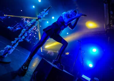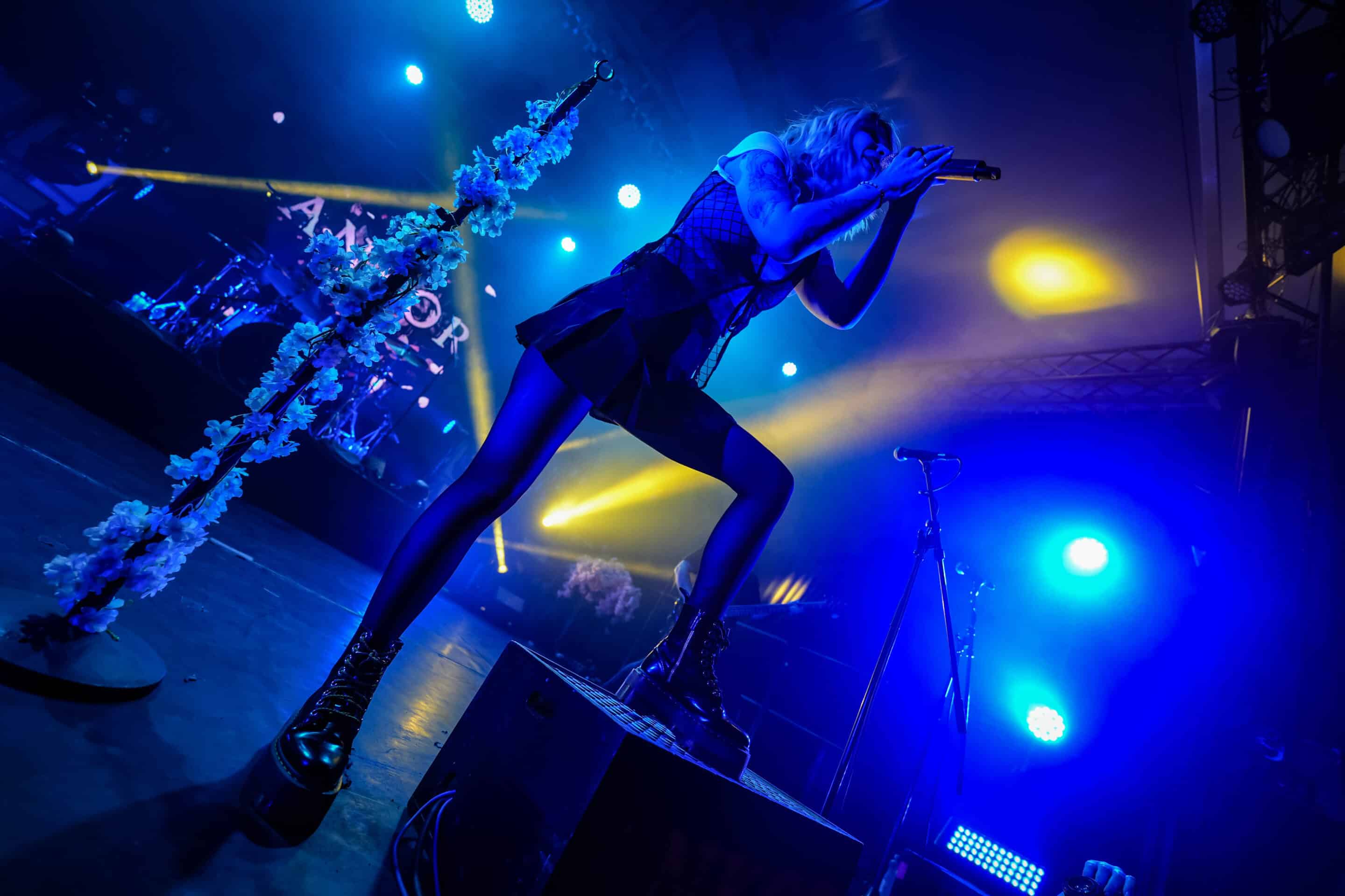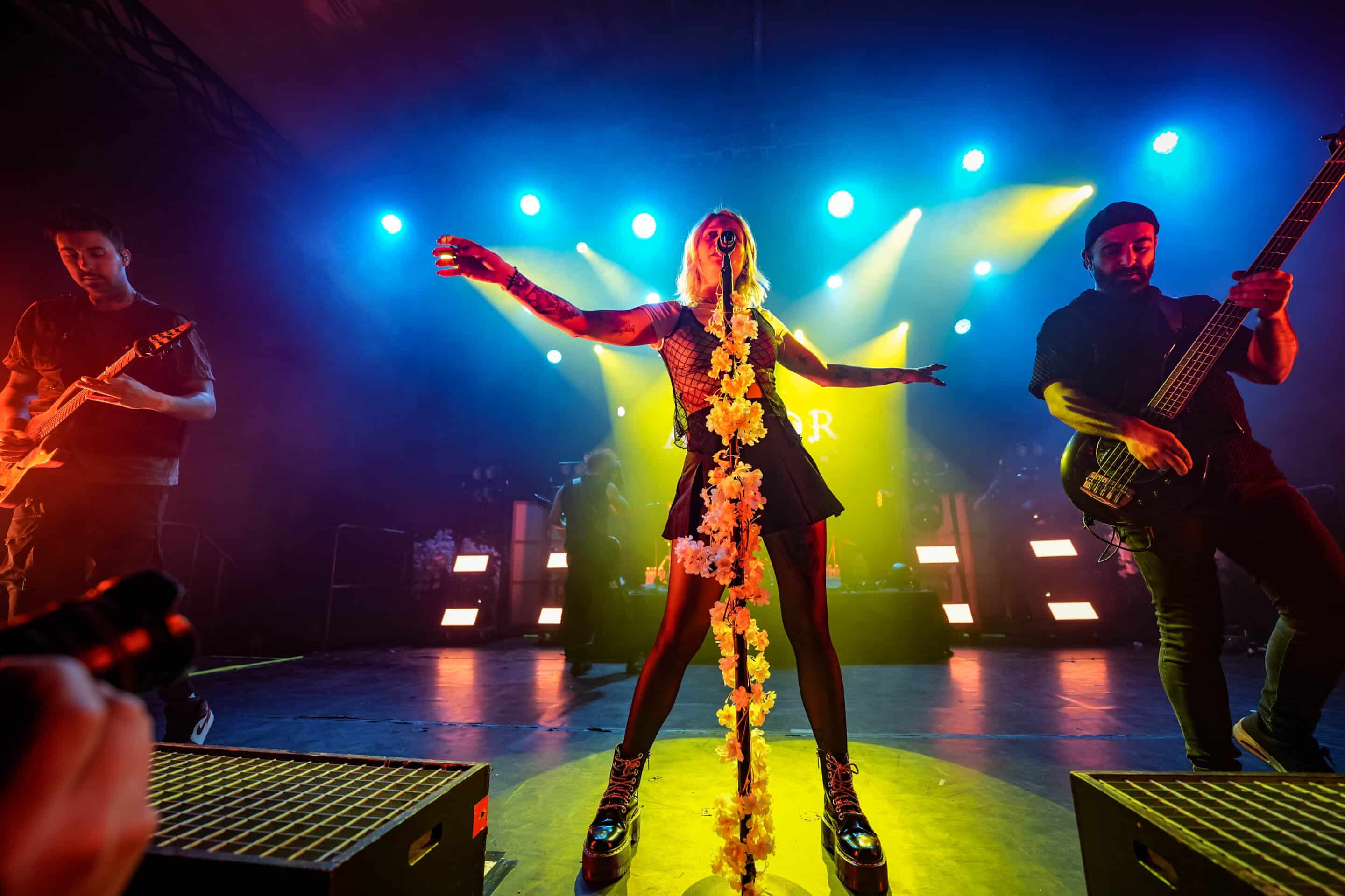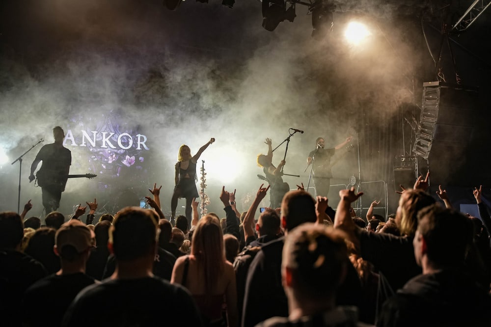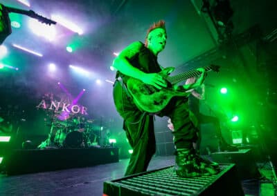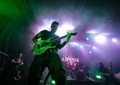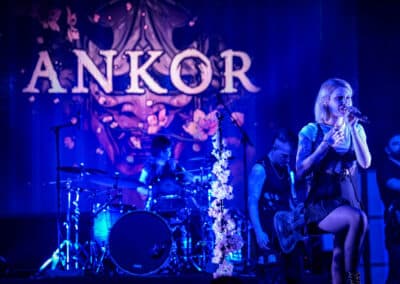 A főhős Ankor már sokkal felkészültebb, energiadúsabb műsorral szolgált. A színpadi díszletük sok rózsaszín virágból állt, ami jólesett a lelkemnek így a tavaszra várva, és ötletes is volt. Először a Görögországból származó dobos, Eleni Nota tűnt fel a színen, brutál cuki az a csaj. Alig látszik ki a dobok mögül (még akkor is, ha feláll a székről), de olyan erővel üti őket, mintha kétszer ekkora lenne. Aztán a gitáros-vokalista David Romeu és Fito Martinez, valamint a punk külsejű és energiájú basszusgitáros, Julio López is besétált a színpadra. Végül pedig az énekes-screamer Jessie Williams libbent be magabiztosan és olyan csinosan, hogy én is zavarba gyüttem. Gyönyörűen énekelt, és a hörgése jócskán felülmúlta a Conquer Divide basszerjáét. Jessie egyébként angol, mégpedig bristoli – az akcentusa alapján egyáltalán nem mondtam volna meg, hogy angol, főleg, hogy még spanyolul is énekelt, de aztán utánanéztem, hogy a bristoli akcentus nem feltétlenül egyezik a „sztereotipikus” britével, úgyhogy végül is belenyugodtam.