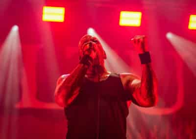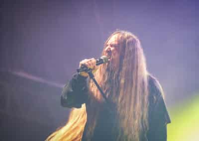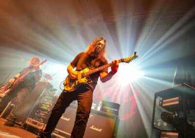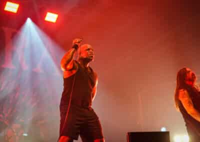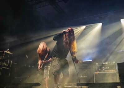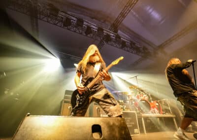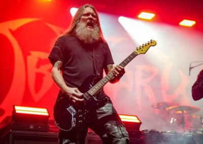 Azért ízlelgessük csak: az Obituary volt a második előzenekar ezen az estén. Floridai barátaink lassan úgy járnak Magyarországra, mint haza – legutoljára éppen tavaly üdvözölhettük őket ugyanezen a színpadon –, és ez volt a kilencedik budapesti koncertjük lassan-lassan 40 éves fennállásuk alatt. Tisztán szóltak a gitárok – meg merem kockáztatni, hogy az est legjobb hangzását ők produkálták –, és abban a szűk egy órában, ami rájuk jutott, próbáltak egy viszonylag jó merítés bemutatni az életműből… már amennyire ezt ennyi időben és ennyi albummal a hátuk mögött meg lehetett tenni.
