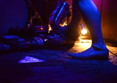 Valószínüleg a britt-finn duó egy kifejezetten mély zenei alámerülést, a dallamokban, ütemekben való elmerülést célozza, mintegy zenei folyamként, az általános dalszerkezeti struktúráktól teljesen elrugaszkodva. Ehhez szolgál a szűkített színpadkép szőnyeggel, összetolt fullcsöves vintage erősítőkkel és egymással szemben muzsikáló