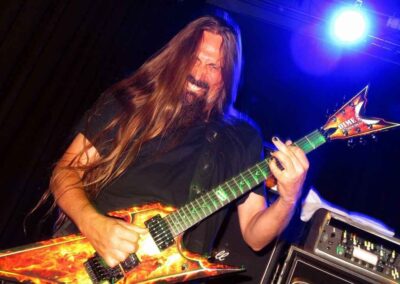 Apropó a setlist! 17 kőkemény klasszikus death metal dal, semmi üresjárat. Még egy kis gitárpárbajra is jutott idő amolyan „kinek nagyobb a brokija” jelleggel. Rendes mozgás, nincs sumákolás, hibákat keresve is nehéz lehetett volna találni. Szívmelengető volt ez a profizmus. Szinte az összes igazi Morbid Angel klasszikus terítékre került. Legjobban talán a Rapture, Dominate, Where the Slime Live és a befejező két dal, a God of Emptiness, World of Shit kombó ütött, de ebben biztosan közrejátszik, hogy ezeket vártuk a legjobban. Az volt furcsa egy kicsit, hogy a Where the Slime Live jóval gyorsabbra sikerült, mint az albumverzió, pedig annak elég jellegzetes lüktetése van. De így is élvezhető volt szerencsére.