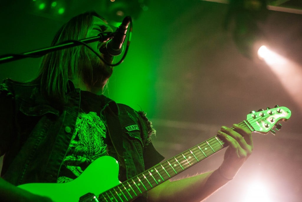 Elérkezett az este a közönség egyik része által leginkább várt performanszához – meglehetősen sokan inkább a német Equilibrium fellépése miatt váltottak jegyet – nem hiába, a csapat a 2010-es évek óta hatalmas népszerűségnek örvend hazánkban. Számomra az Erdentempel és Armageddon albumuk már nem annyira hozzák vissza azt az érzést, amit a korábbi Equilibrium adott, én úgy érzem, hogy kevesebb az a végtelenül egyedi, kreatív és pompázatos dallam már az újabb anyagokon. Ettől függetlenül mindig szívesen nézem meg az egykor kedvencek közé tartozott csapatot. A legutóbbi albumról talán csak a Rise Again az, ami visszahozza a jó kis Rekreatur-os hangulatot, a többi valahogy túlmesterkedett, belassult, kevésbé kreatív, jó-jó, de egyszerűen nem az a frissesség és erő van benne, mint a régi Equilibriumban. De hagyjuk is ezt a túlságosan is szubjektív véleményt, elkezdődött a koncert, ideje bulizni, élvezni a produkciót. Elsőként az instrumentális Prey-t. Basszusgitáros nélkül. Szóval az volt, hogy valami elég nagy hiba csúszott a rendszerbe, ugyanis Robse mikrofonja a teljes dal alatt nem szólt. Szerencsére hamar a probléma megoldására siettek, addig Robse mit volt mit tenni, járkált, headbangelt, vigyorgott, tartotta a kapcsolatot a közönséggel, meg a lelket bennük, vállat vont, hogy hát nincs mit tenni… ¯\_(ツ)_/¯